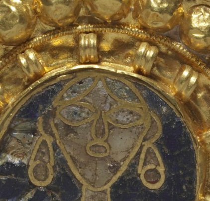7th C Lombard fibula found in Commachio decorated w/ enamel bust, Byzantine-influenced. Originally had dangling pendants from loopspic.twitter.com/cmcyGZV5f6