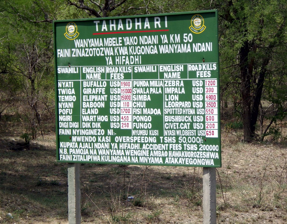 This reminds me of the roadside sign on the road next to Mikumi National Park, announcing the (very) different fines for running into/over different animal species.https://twitter.com/caitlinrgreen/status/932028234690068481 …