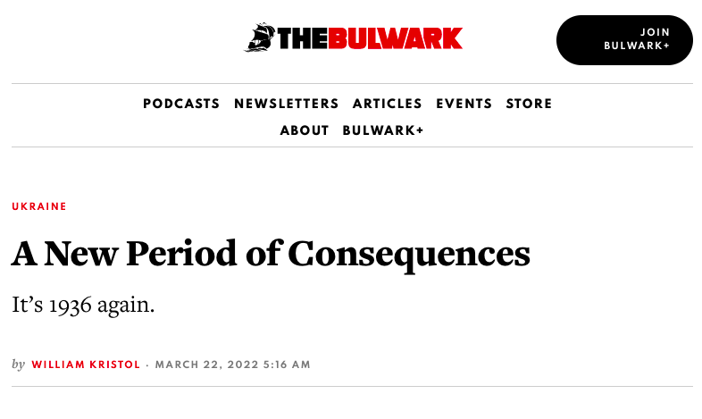 Kristol has also published a new think piece arguing that this is just like the years before World War 2, because there weren't enough of those already.pic.twitter.com/9vyWa8CyEQ
