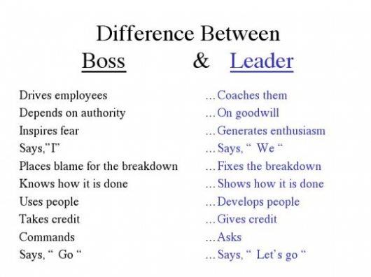 At times you do need to be the boss! “@calestous: Instructive: Differences between bosses and leaders (inforgraphic) pic.twitter.com/hCdoWowN2S”