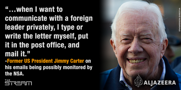 How Jimmy Carter works around #NSA surveillance http://buff.ly/1ivpzSq via @AJStreampic.twitter.com/nd4FHhUvX0