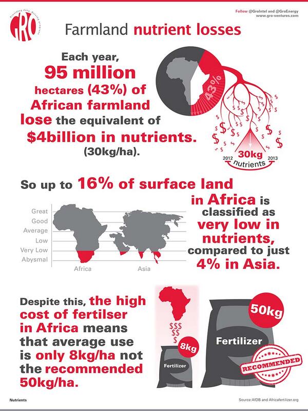 #Africa loses $4B in #soil nutrients yearly but has lowest fertilizer use at only 8kg/ha pic.twitter.com/j69yXvv1Ry via @GroIntel h/t @calestous