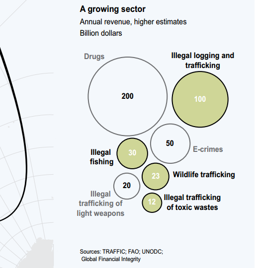 Annual illegal #wildlife trade & ecological crime is worth US$70-213 billion, @UNEP http://bit.ly/1yNSwl1 pic.twitter.com/774KvJQ1UJ
