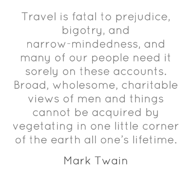 "Travel is fatal to prejudice, bigotry and narrow-mindedness." -- Mark Twain http://bit.ly/1qjWzDf pic.twitter.com/5ncJ3di2E5