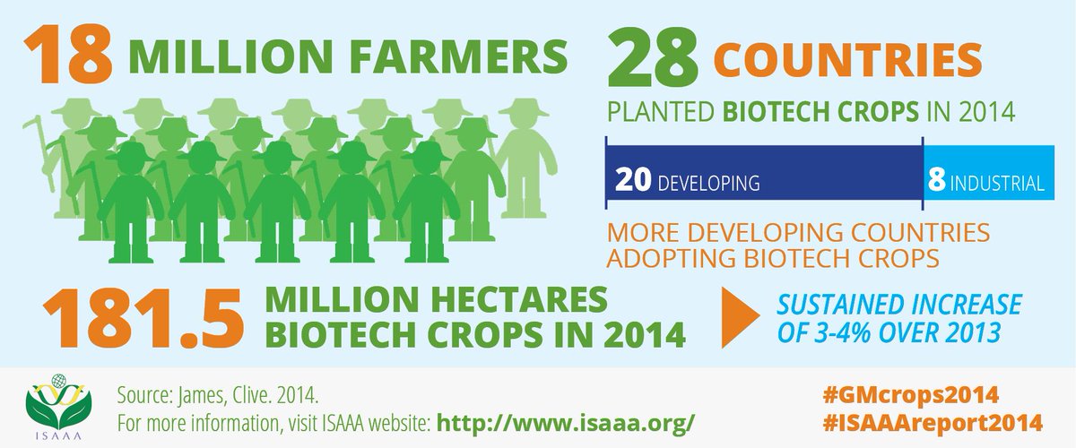 RT @isaaa_org: 18 million farmers in 28 nations planted 181.5 million ha of biotech crops in 2014 #GMcrops2014pic.twitter.com/LNAVoJ25nj