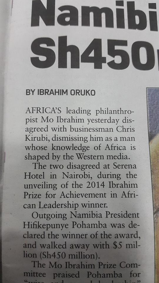 @RobertAlai What was the disagreement between @CKirubi and @Mo_IbrahimFdn about? Is Chris also planning to start prize and scholarship?