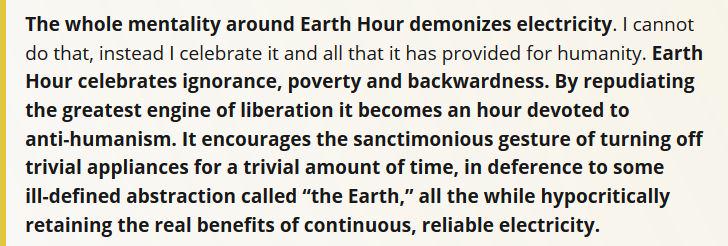 http://www.aei.org/publication/earth-hour-celebrates-ignorance-poverty-and-backwardness/ …