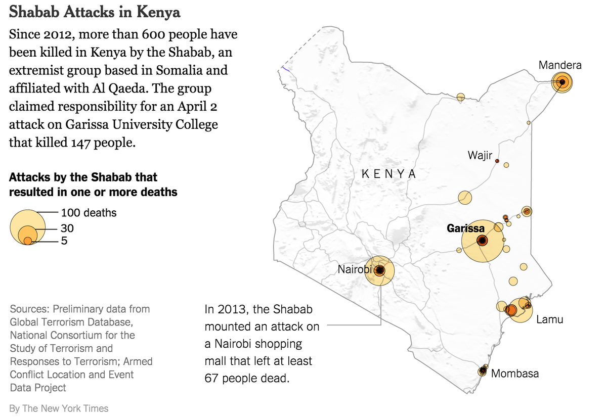 RT @waithash: Since 2012, more than 600 Kenyans have died in attacks by the #alShabab http://nyti.ms/1y5fmHX pic.twitter.com/pD3NKbBDUX