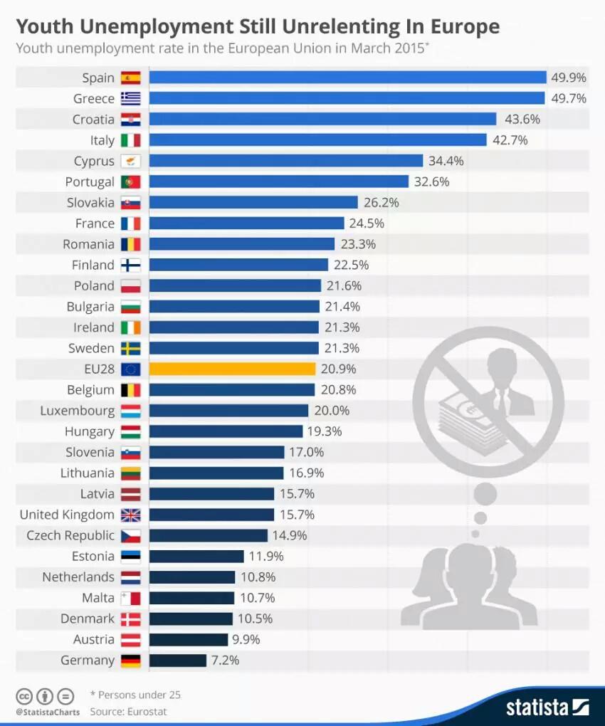 #YouthArising unemployment rate in the #EU in March 2015. http://www.statista.com/chart/3644/youth-unemployment-still-unrelenting-in-europe/ … via @schneiderhomepic.twitter.com/CGUttJ3fty