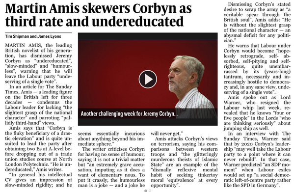 *yawns loudly* - Martin Amis doesn't like Jeremy Corbyn & the Sunday Times love that fact & personal attackspic.twitter.com/2vYgzLfd5u
