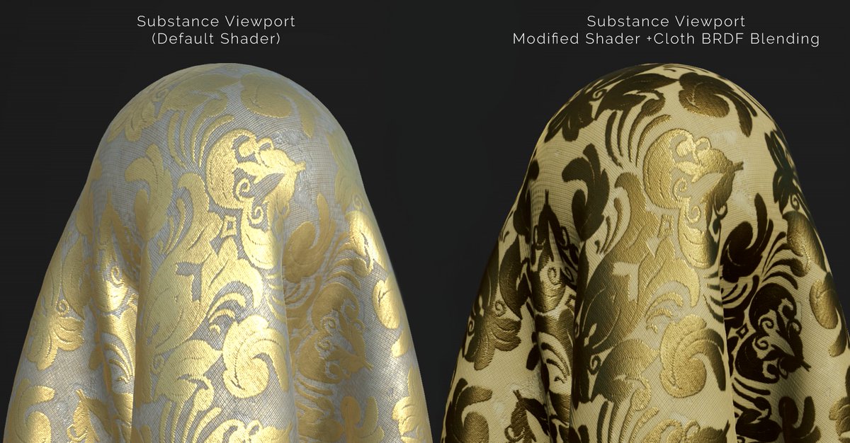 Comparison between the default Substance viewport & my modified shader - ACES tonemapping, directional light, cloth BRDF blending, modified BRDFs for IBL & lighting contributions to parallel Epic's implementationpic.twitter.com/hBf8kpFjcN