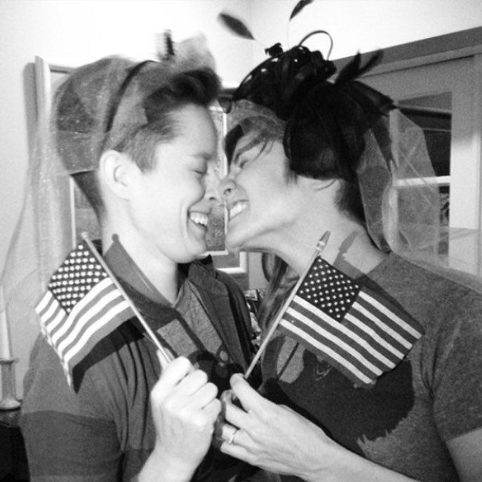 My lil sis took this after DOMA fell & we got engaged. We're still here. And that flag is still ours. Never gonna stop working for equalitypic.twitter.com/gzykUwSetW