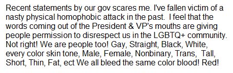 My state doesn't even have a hate crime law. We don't have equal protection 4