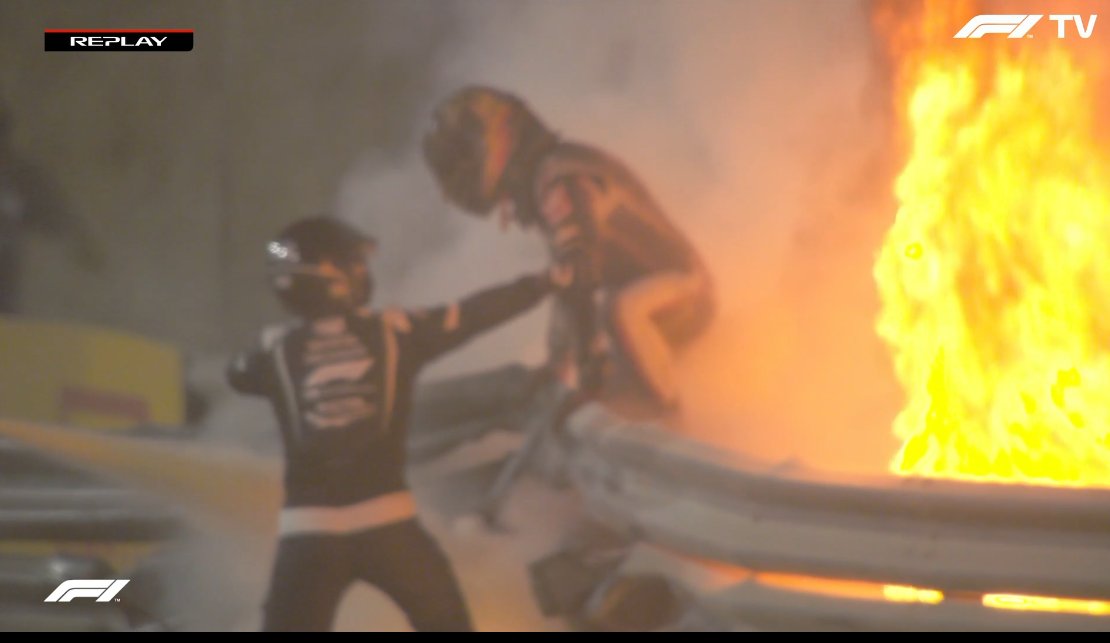 @RGrosjean is okay after that frightening crash.#BahrainGPpic.twitter.com/oT93UrpaTW