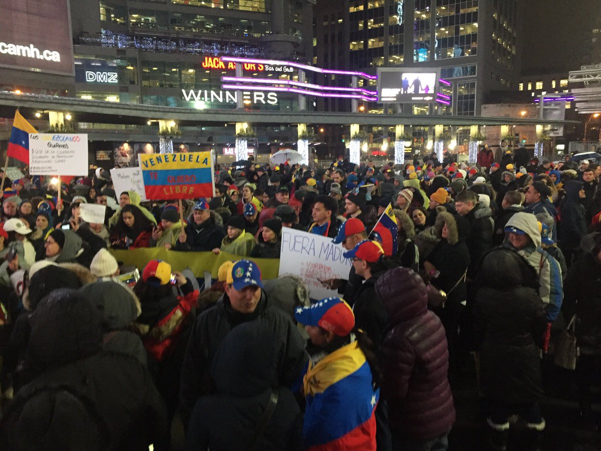Hey Camila you and @teleSUR_English forgot to report on the demonstration of the actual Venezuelan diaspora in #Toronto on the #23Enero Demands were 1.Cessation of usurpation of power by Maduro 2. Establishment of a transitional government 3. Free and Fair electionspic.twitter.com/37BMdheW3q
