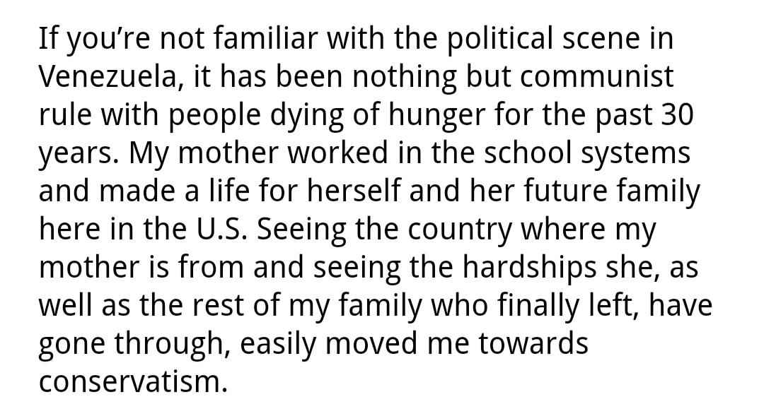 She is fully convinced Venezuela was socialist 30 years ago, that is, by 1987! http://redalertpolitics.com/2017/06/09/call-unicorn-millennial-minority-female-conservative/ …pic.twitter.com/oGK3rVRfxH