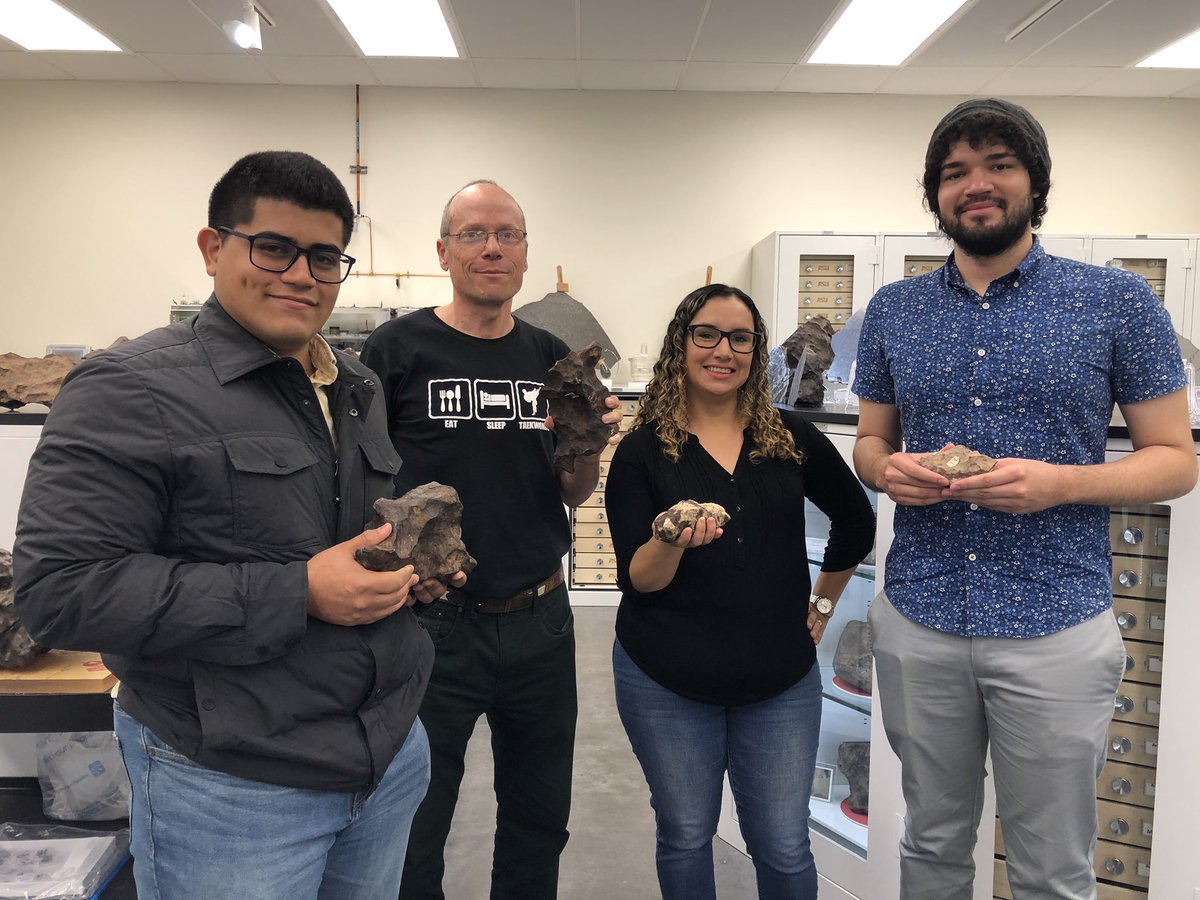 @IVachier y Alberto Rosado tuvieron la oportunidad de visitar la bóveda del Centro de Estudios de Meteoritos de@ASU, aquí junto al Dr. Laurence Garvie, Curador de la colección, y la Dra.@dcottofi, quiénes colaboran en proyecto de la NASA.#UPRHpic.twitter.com/MpadmTgDgv