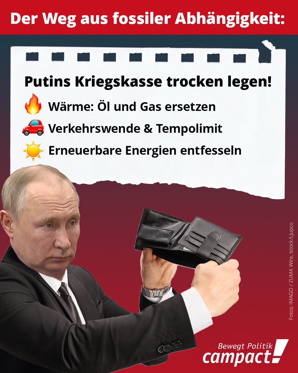 Unterzeichne unseren Appell für eine konsequente Abkehr von fossiler Energie und der Abhängigkeit von Despoten wie #Putin: http://campact.org/Energie_wende pic.twitter.com/I0n4o4lDEn