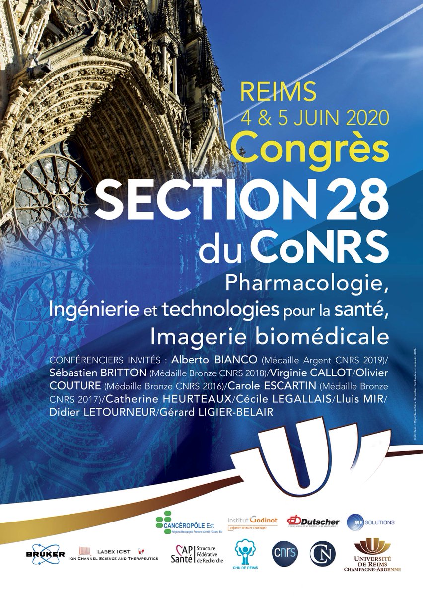Le congrès de la section 28 du Comité National de la Recherche Scientifique aura lieu les 4 et 5 juin 2020 à Reims. Un programme exceptionnel vous y attend dans les domaines de la pharmacologie et des technologies pour la santé. Inscrivez-vous nombreux https://congress28-2020.sciencesconf.org/ pic.twitter.com/lwmEbcc3rd