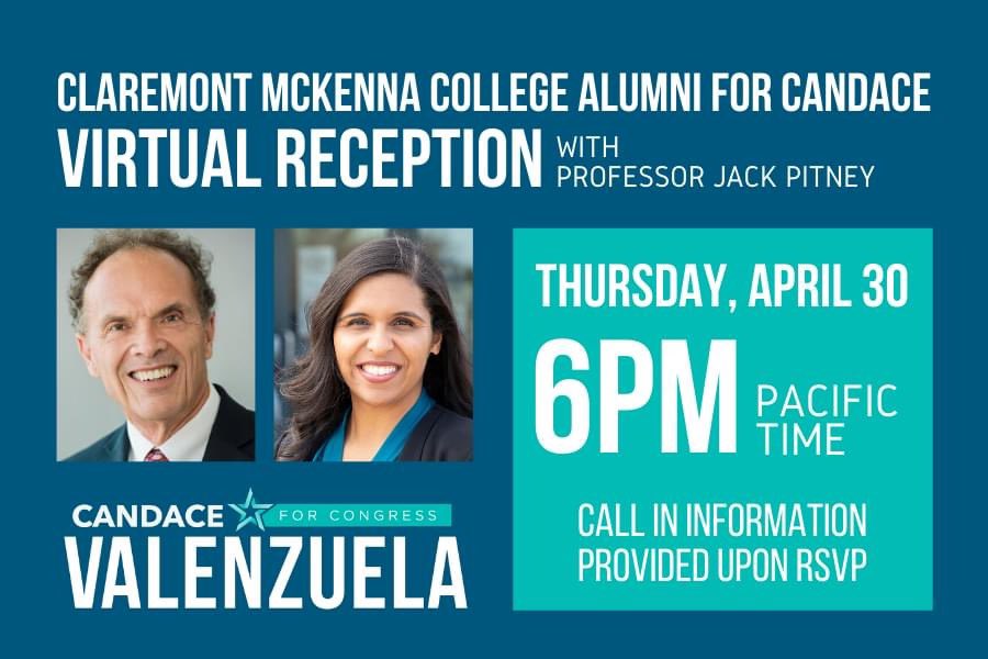 #TX24, Please join our Claremont McKenna College Alumni Host Committee on April 30th for a virtual reception with Candace and Professor Jack Pitney (@jpitney).