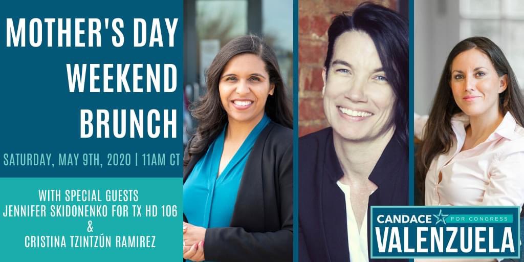 Please join us for a Mother's Day Weekend Brunch next Saturday, May 9th at 11AM! 💐 I will be joined by special guests @SkidonenkoForTX and @cristinafortx for a discussion on motherhood and politics! 👩‍👧‍👦 RSVP or Contribute Here: http://bit.ly/3ckaWlO pic.twitter.com/1SZ7YqSfbr