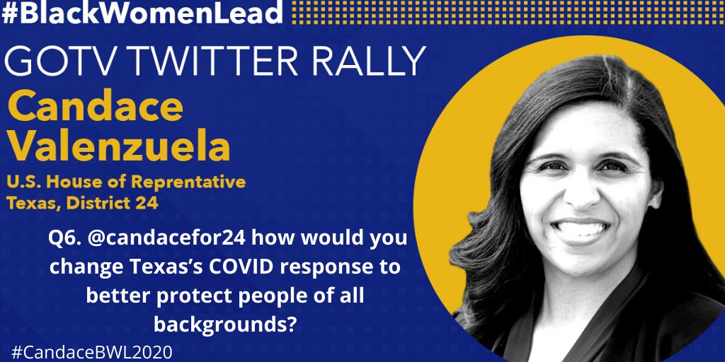 Q6. @candacefor24 how would you change Texas’s COVID response to better protect people of all backgrounds? #CandaceBWL2020 #BlackWomenLead pic.twitter.com/HNGsGSWaJv