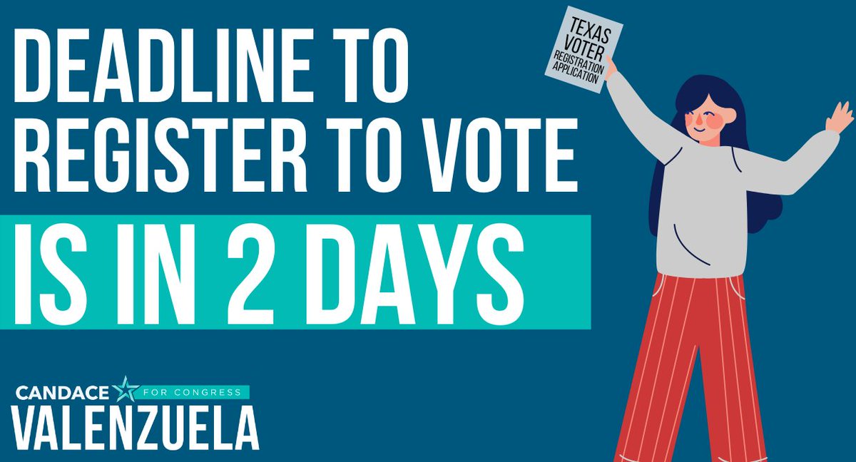 We're a month away from Election Day, but October 5th is the last day to register to vote in person or by mail! Tell your friends and family, and register to vote at http://votetexas.gov/register pic.twitter.com/flRcwd36dG
