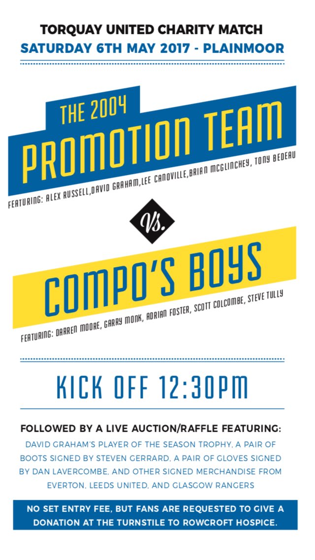 #tufc Promotion Team friendly is coming to Plainmoor on May 6th. Not long now!http://www.torquayunited.com/news/article/2016-17/compos-boys-vs-the-2004-promotion-team-3667430.aspx …Thanks. Twitter will use this to make your timeline better. Undo -
