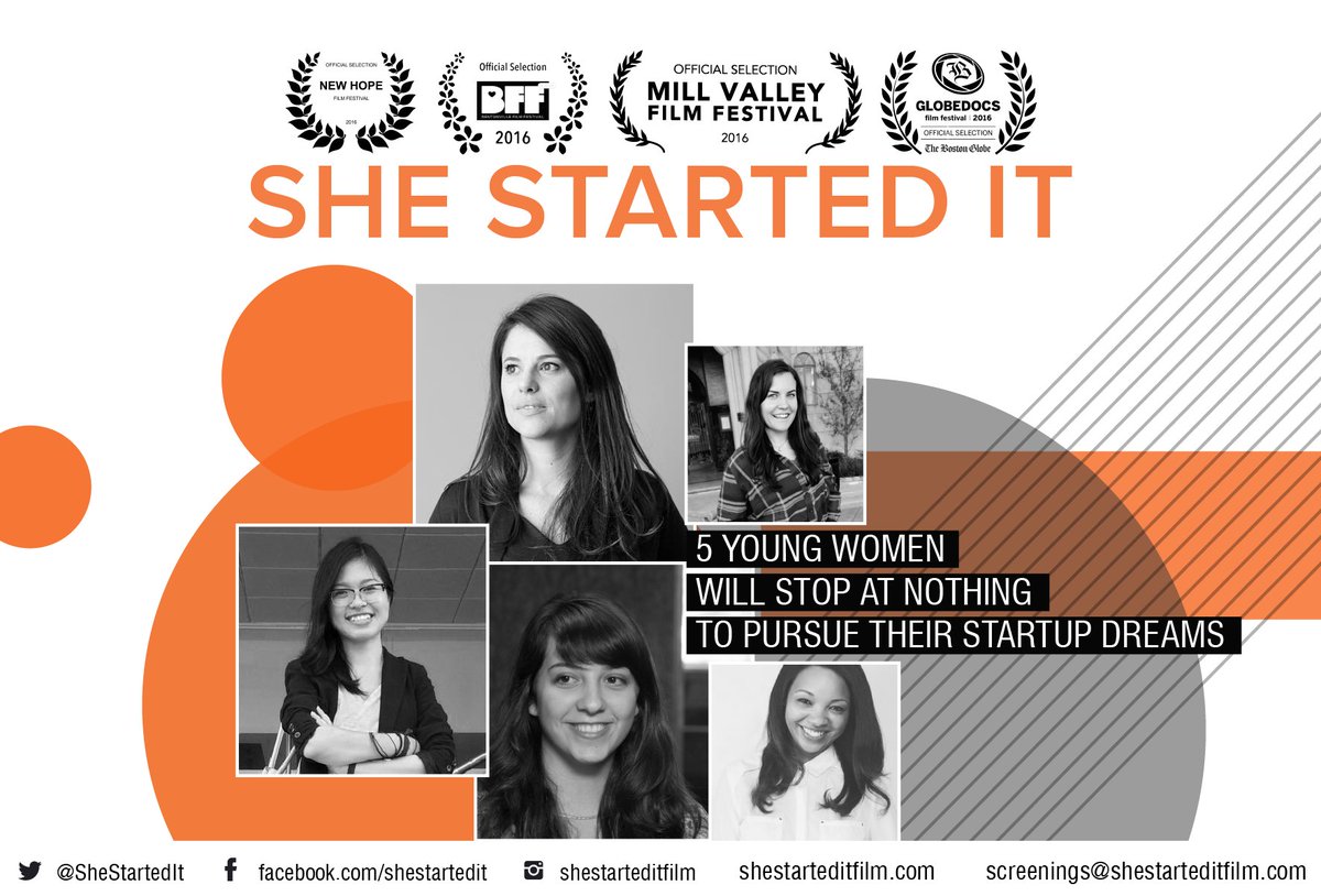 #SheStartedIt screenings at: .@STLFilmFest .@NapaFilmFest .@HarvardHBS's@HBSNYCStudio@ColumbiaEntrep: http://bit.ly/2dWBZqu pic.twitter.com/ljroZpg6fQ