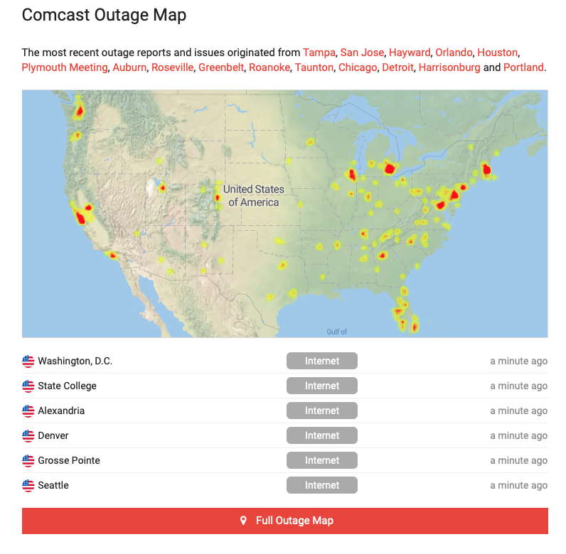 Wow — Comcast in SF is down, looks like the wider bay area is affected. Even the phone support system is down!