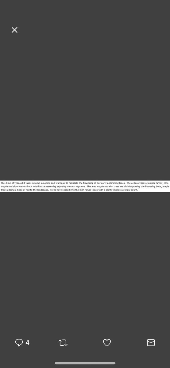 Got my first http://Pollen.com alert email this morning. Apparently, this weekend will be a bit high, too. https://www.pollen.com/forecast/extended/pollen/20877 … And so it begins... ahhhhh....