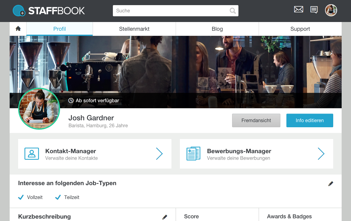 Der exklusive Blick ins Portal! So könnte euer Profil für die Jobsuche bei in wenigen Wochen aussehen.