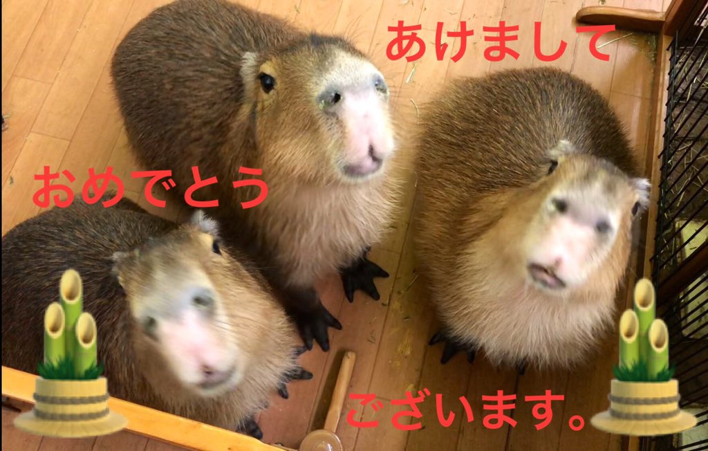 新年明けましておめでとうございます。いつもかわいいカピバラのお写真に大変癒されています。いつかカピバランド にもいらっしゃってくださいね(^^) 本年もどうぞ宜しくお願い申し上げます。pic.twitter.com/WKnPYmdcEp
