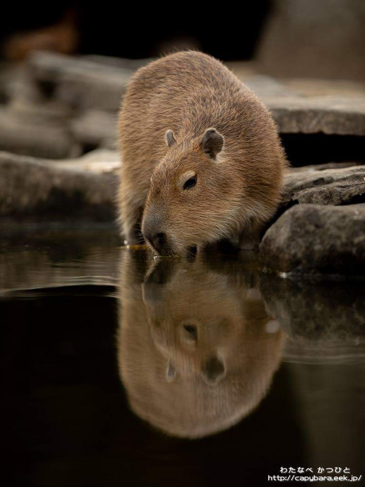 これはまるで、 ナルキッソスなカピバラ少年 って題名をつけたい感じのお写真ですね!!