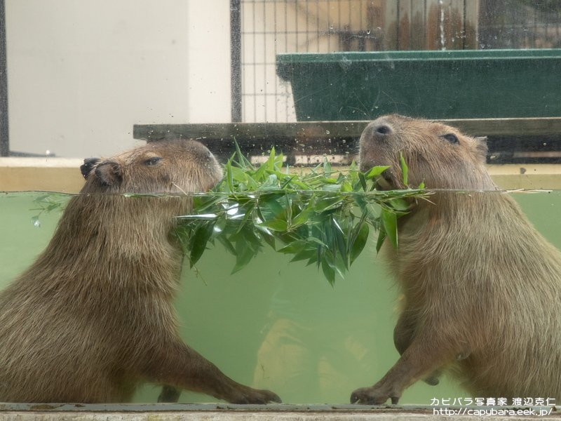9/1まで毎日13時より「カピバラのじゃぶじゃぶタイム」開催中。トークライブとカピバラが水に入る様子が観察出来ます。