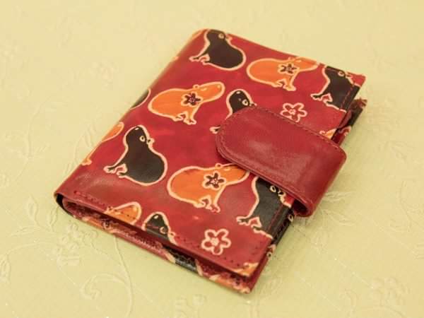 山羊革「 シンプル二つ折り財布 ・花とカピバラ」2268円。 薄くてコンパクトなシンプル二つ折り財布、カードポケット8、内側には小銭入れ、ファスナー付きポケットがあり大容量だ。pic.twitter.com/wflGwdI7Dy