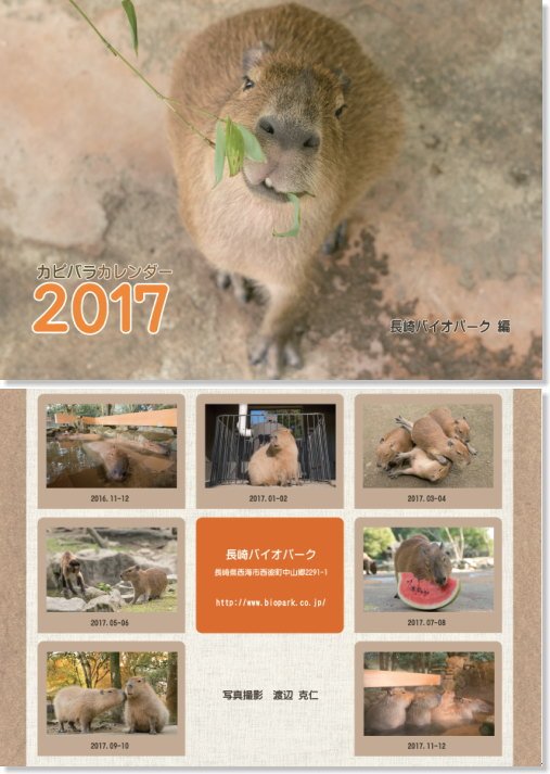 2017年度 壁掛けカピバラカレンダー長崎バイオパーク編」を園内売店「メルカドプリメラ」にて販売開始致しました。店頭で購入出来るのは、ここだけです。 A4見開きサイズ・2016年11月より、暦は2か月ずつ、2017年12月迄です。可愛いカピバラ写真満載の作品となりました、是非!pic.twitter.com/bfIFdhjutv