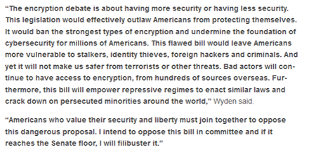 I will do everything in my power to block Burr-Feinstein anti-encryption bill. It makes Americans less safe.pic.twitter.com/NyLK3KSPrs