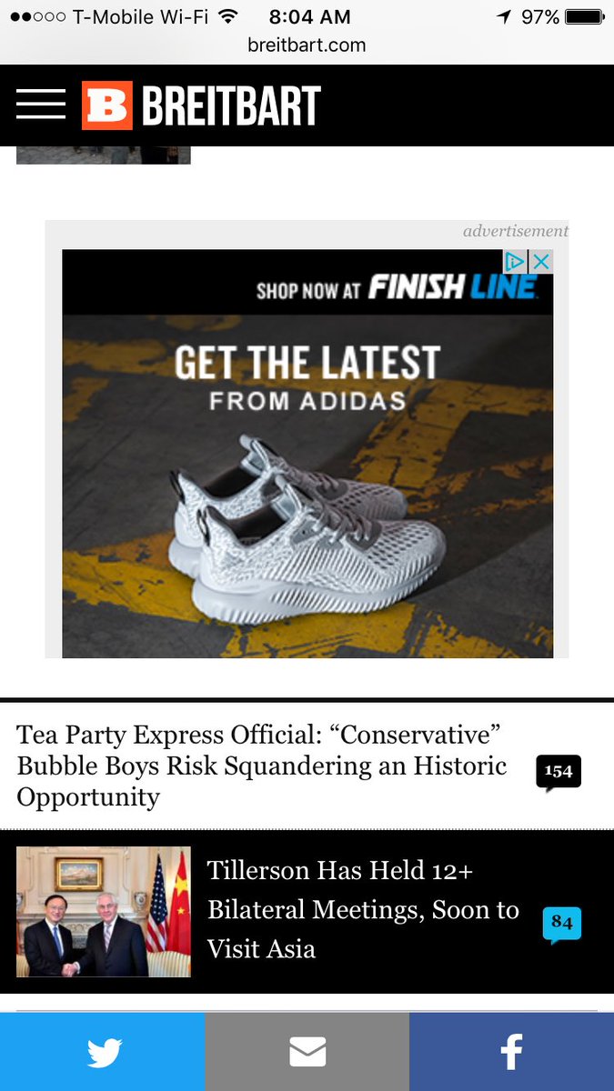 @FinishLine are you aware that your ads are showing up on Breitbart, the "platform for the alt-right". Consider removing? Easy to fix!https://twitter.com/amykhop/status/839857812083621892 …