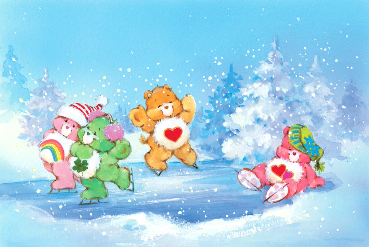 Care Bears on ice in a winter wonderland