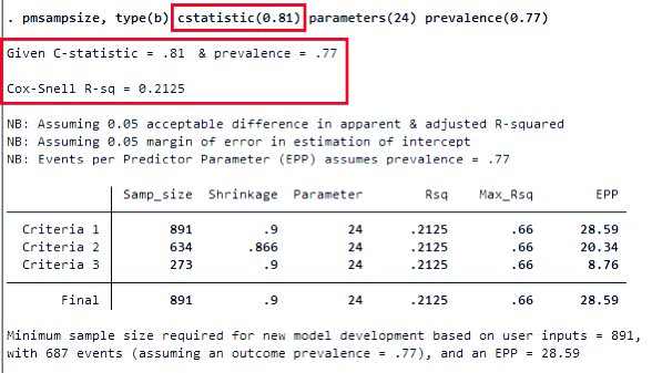 #rstats &@Stata Use C statistic from existing binary outcome model to calculate minimum sample size required for a new prediction model development study Based on