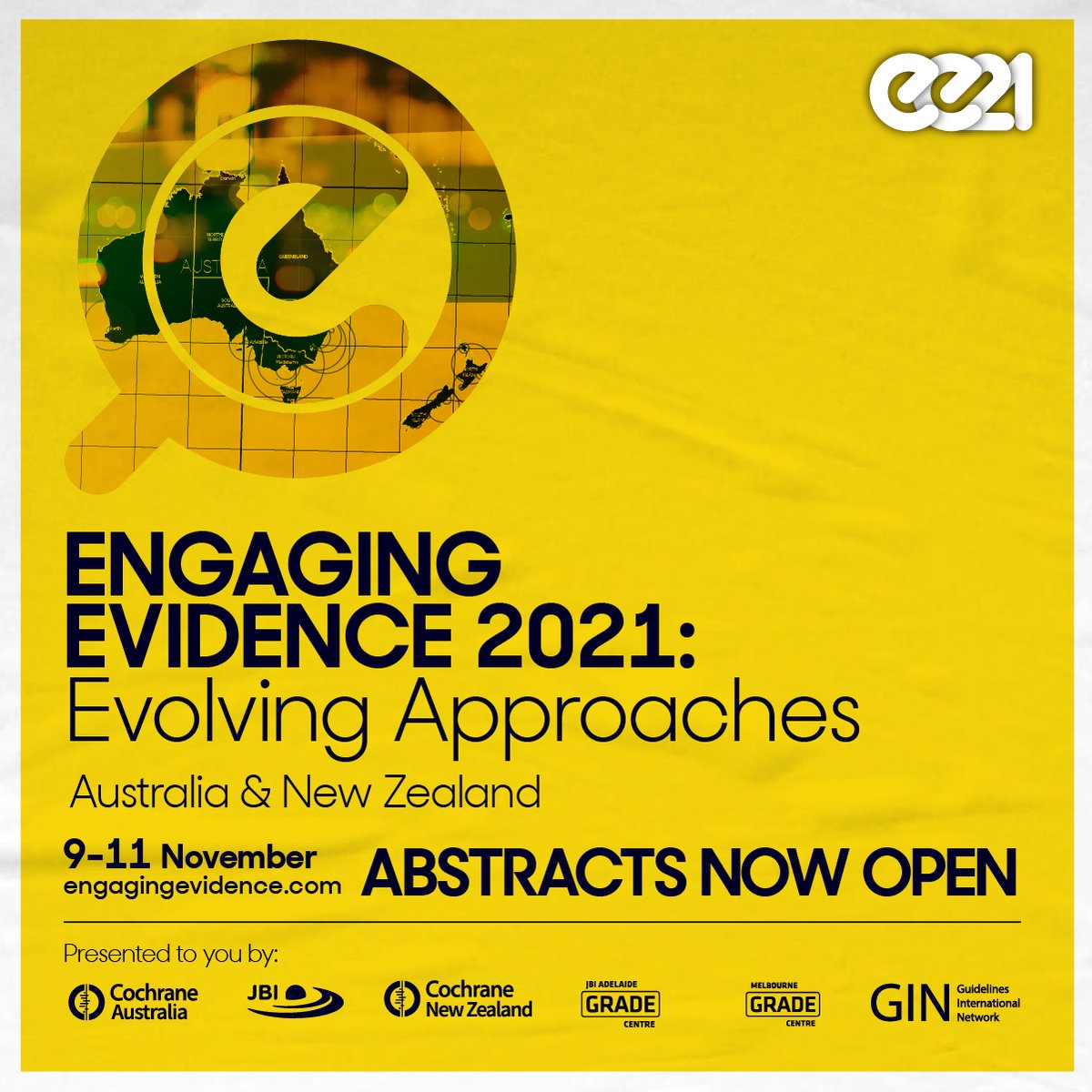 Abstracts are now open for the Engaging Evidence event, presented by the regional groups of Cochrane, JBI, GRADE & GIN in November. Find out more on the website: https://www.engagingevidence.com/#Submit-Abstract …pic.twitter.com/cTaYKwGwFP