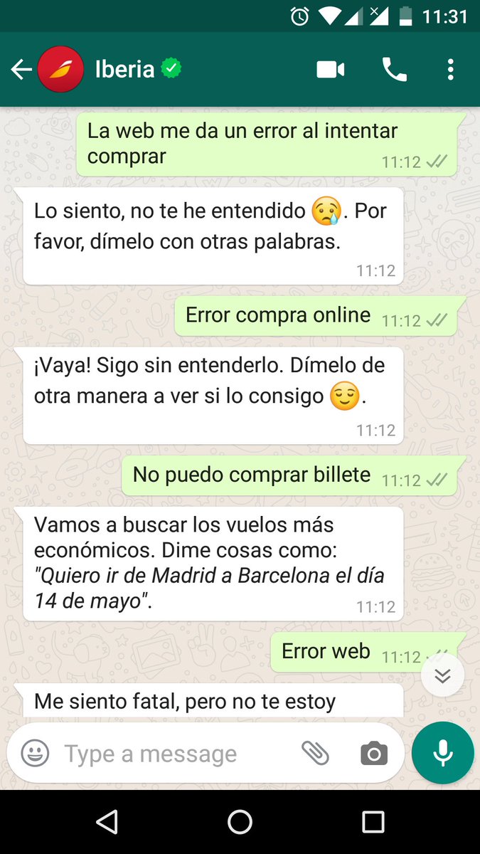 Friend: Yes, from Vigo to Madrid AI: here are the ticket options, follow the link to pick one Friend: I can't buy, error on the website AI: I can't understand try other words Friend: This service sucks AI: give me another opportunity!!pic.twitter.com/HhjgALwt21