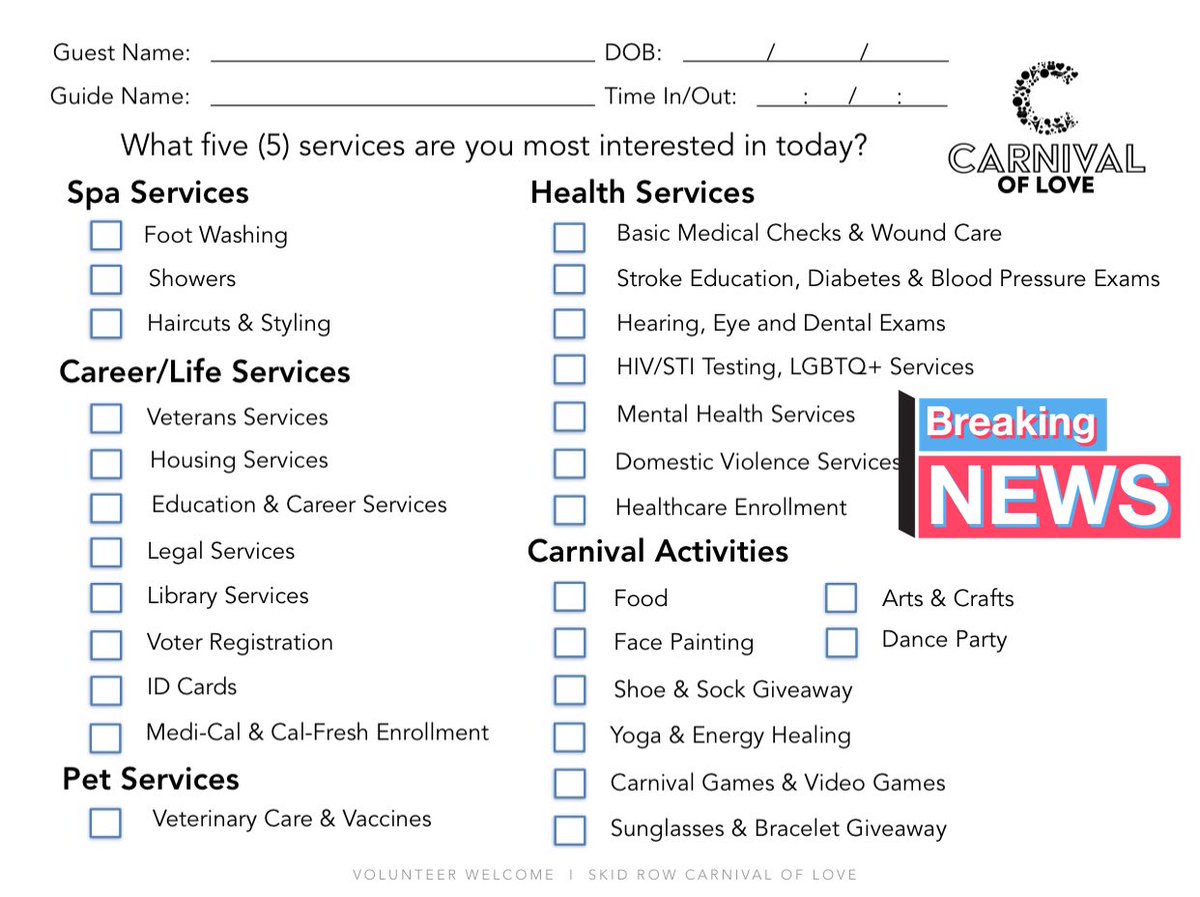 Smile and invite all those Unhoused you may see this morning! Guests enter @ 5th and San Julian... A day of fun and life welcoming services. Lunch, foot washes, games, shoe station... I will be escorting guests to the many options listed.