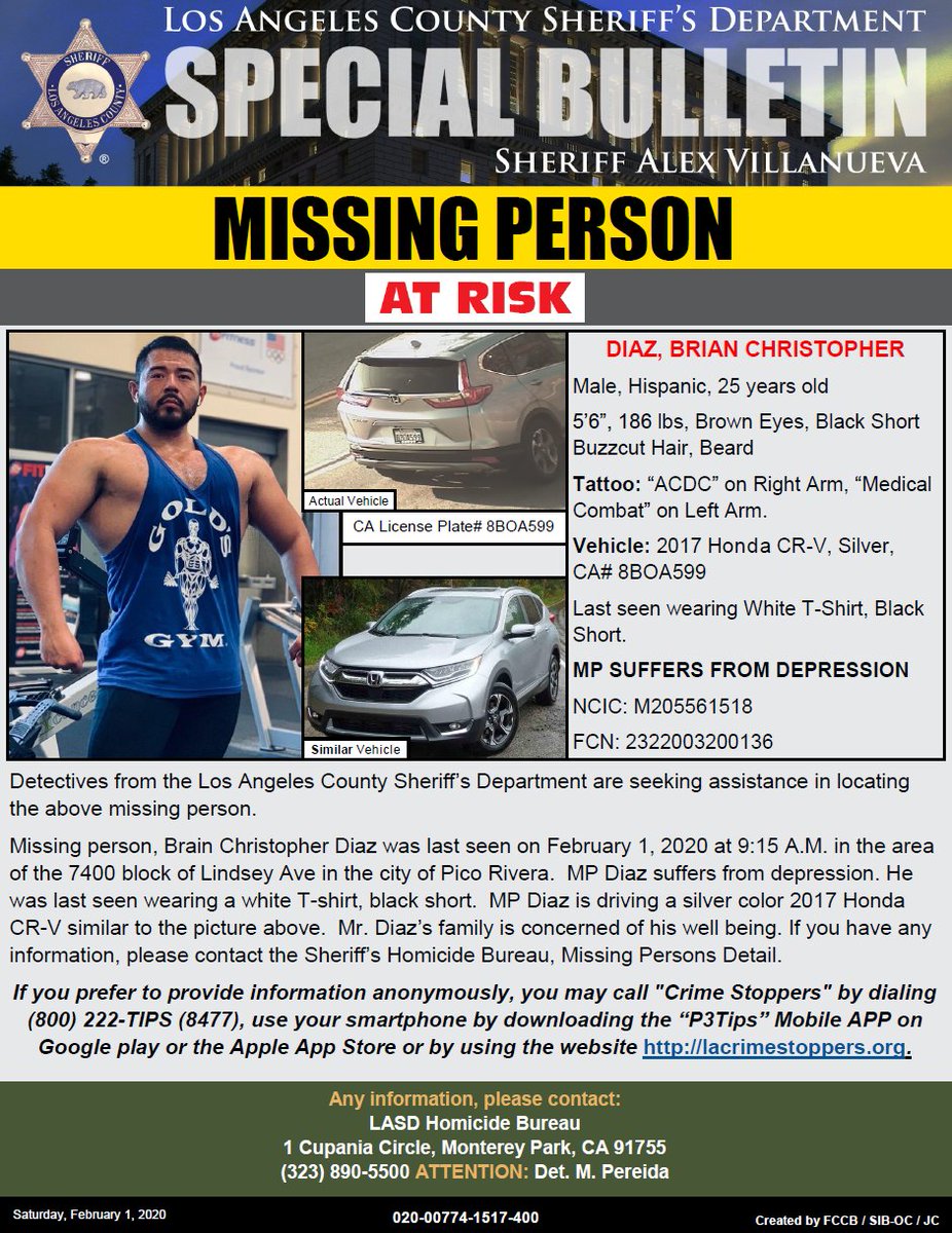 LASD Seeking Public's Help in Locating Missing Person, Brian Christopher Diaz https://bit.ly/2S9vAfZ pic.twitter.com/XjCWim39BH