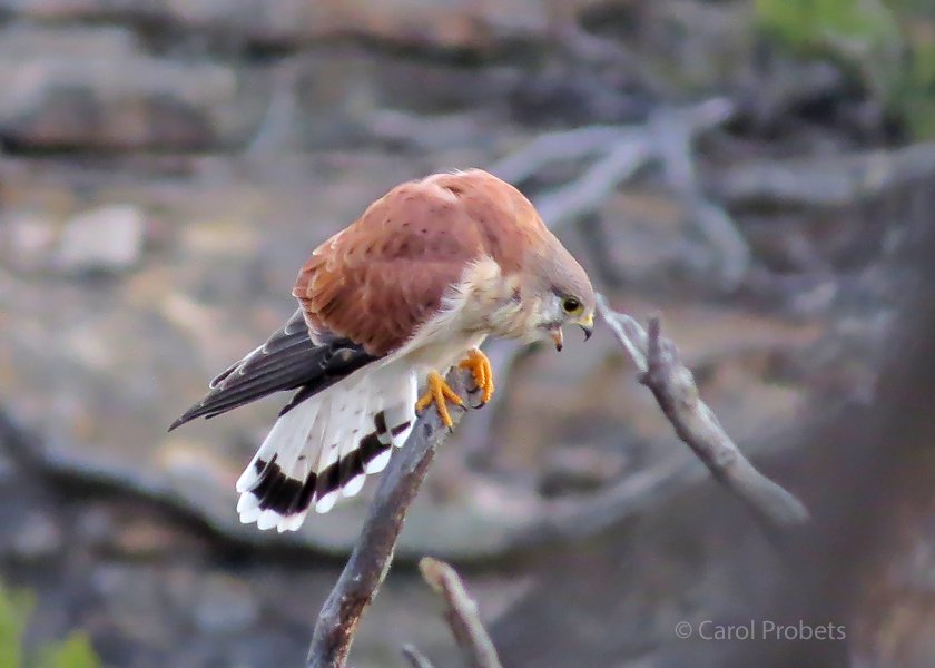 It looks like he's about to regurgitate a pellet, but in fact this Nankeen Kestrel is making sure everyone knows who's boss by calling as loudly as possible. And all the other kestrels had better hear!