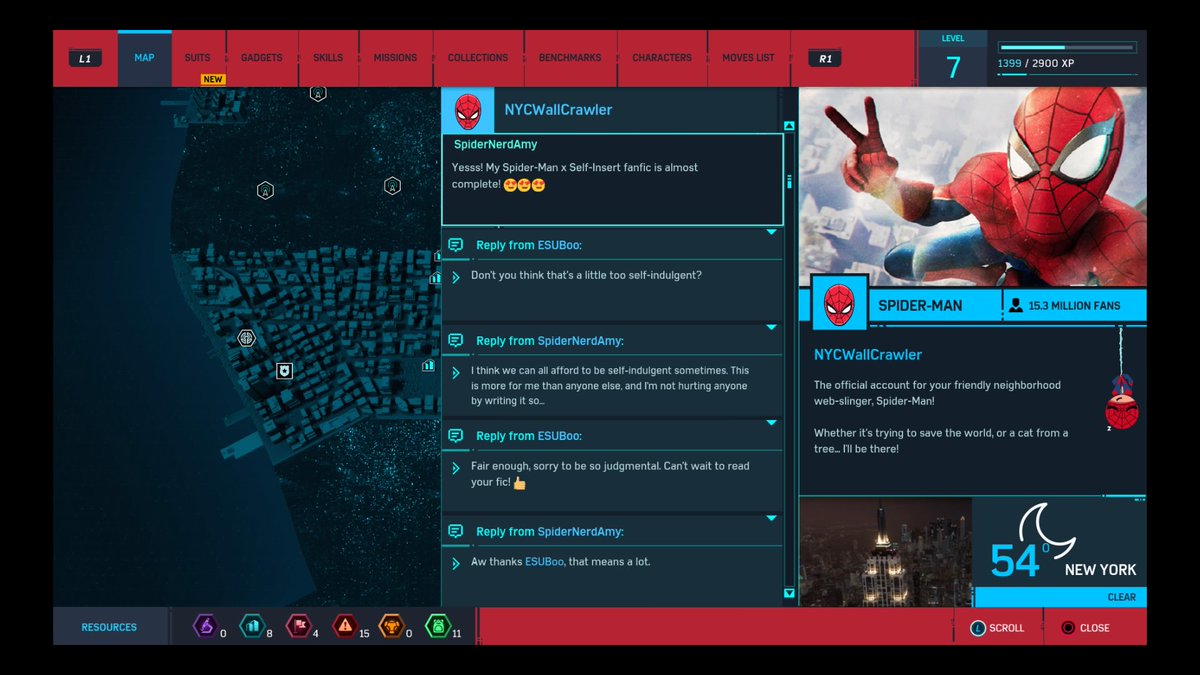 So far in my very early time with Spider-Man, my favorite thing is reading the not-Twitter. A cool in-universe way to develop character and world IMO.