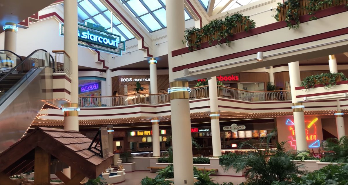 This is amazing—Stranger Things 3's Starcourt Mall wasn't a sound stage. It was all built inside an actual dying mall in Georgia. And the set designers made more than simple storefronts—they made FULL INTERIORS, even for stores that were never seen on-screen…pic.twitter.com/v5RahFLPeR
