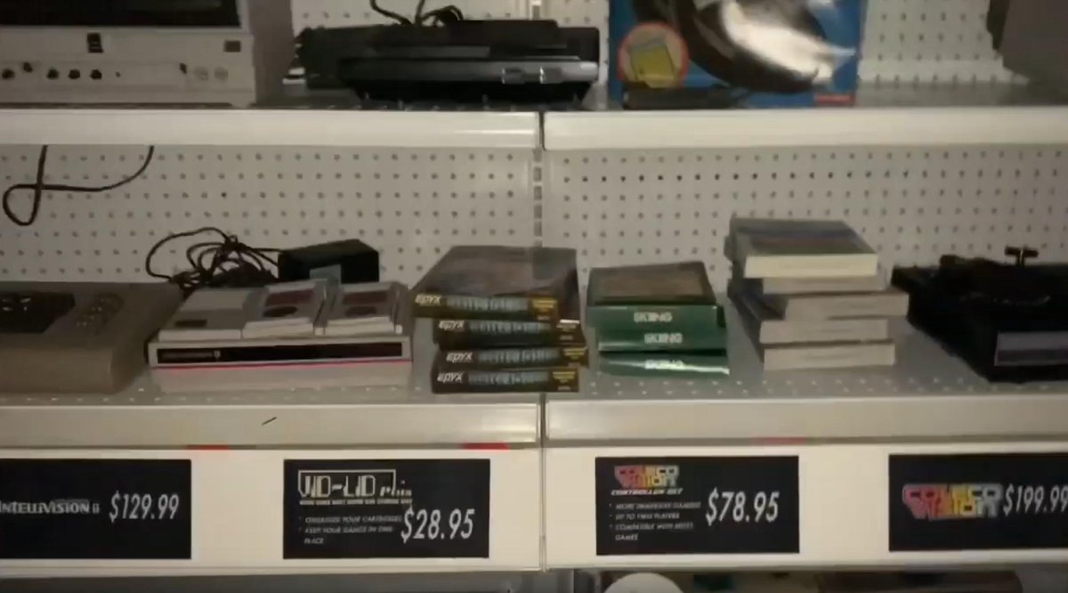 This video shows the mall in the aftermath of the alien battle, and manages to get inside the store, with much more detail starting at 0:57. Commodore, Coleco, Intellivision, and more, with prices and games. https://www.youtube.com/watch?v=bp1LyxNQvkE …pic.twitter.com/lc7GrqVorU