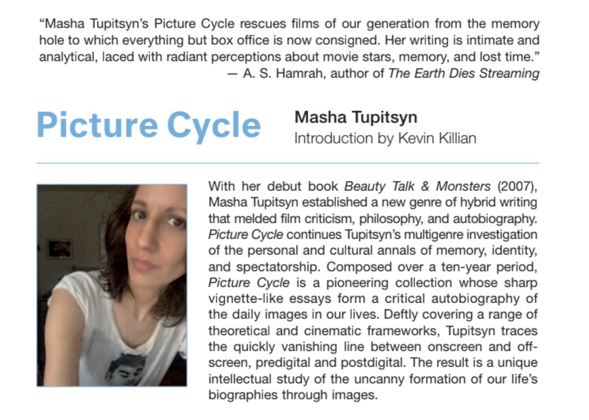 The great new book Picture Cycle by my friend, the incomparable writer, critic and artist Masha Tupitsyn, comes out next month. Learn more about the book and preorder it here: https://mitpress.mit.edu/books/picture-cycle …pic.twitter.com/0m5qnM0Y3i